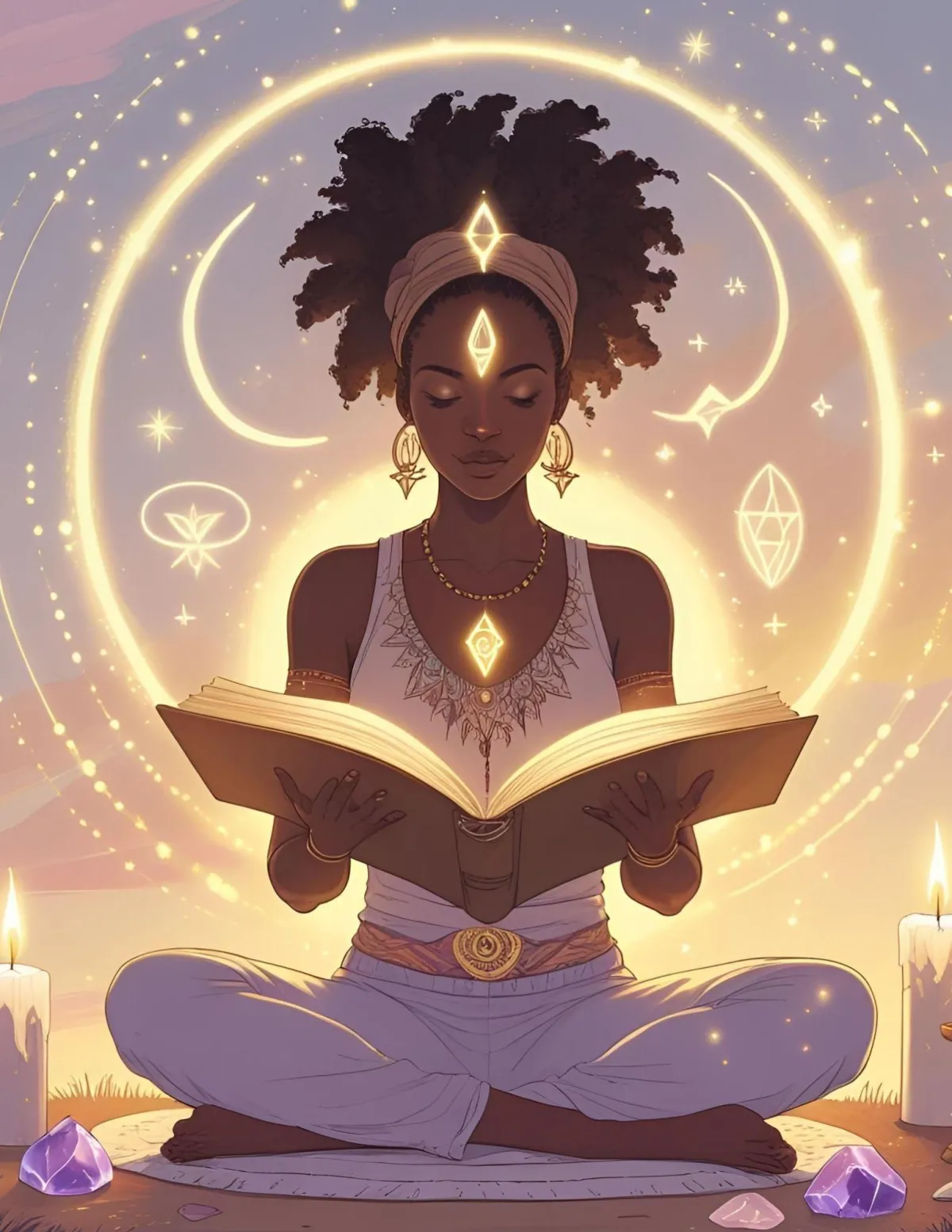 This is where the mystical meets the methodical. Where spiritual depth is given form. Where you don’t just “set intentions”, you become the woman who already lives them.